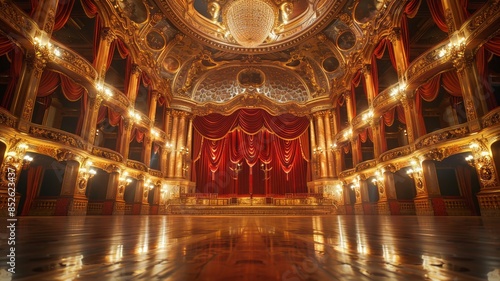 Obraz premium Grandiose Opera House with Golden Ornaments and Red Curtains