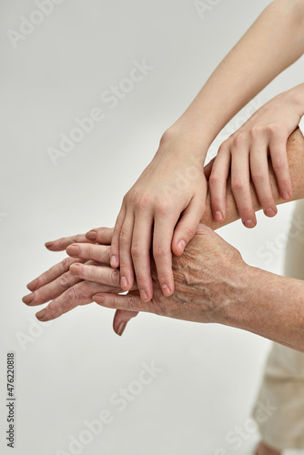 Fototapeta premium Grandma and granddaughter holding hands each other