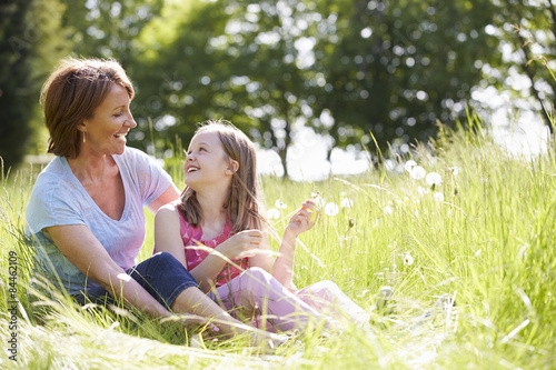 © Monkey Business, Fototapeta premium Grandmother And Granddaughter Sitting In Summer Field