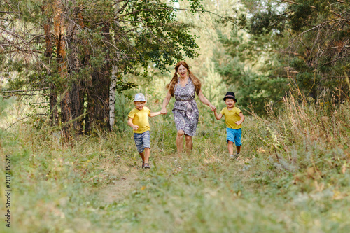 © Alyona, Obraz premium grandmother with two grandsons running in the Park