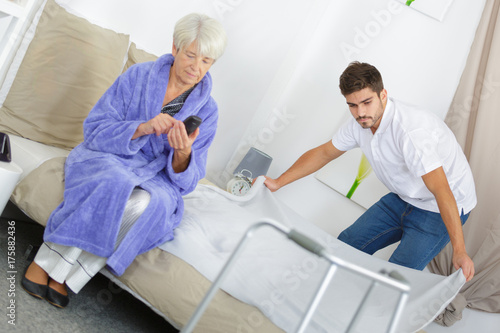 © auremar, Obraz premium grandson helping his grandmother with housekeeping