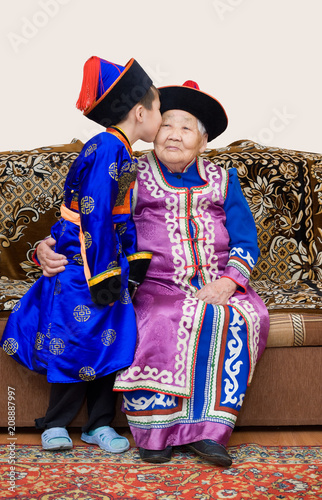 © Alexander, Naklejka premium grandson kisses his great grandmother