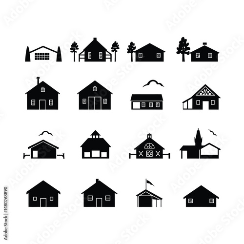Fototapeta premium Grange Set Silhouette Clipart on White Background