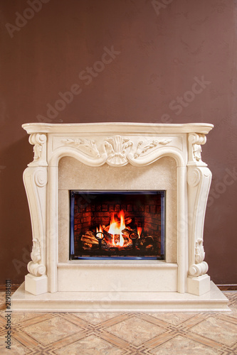 Fototapeta premium Granite marble fireplaces in the interior with handmade decor elements