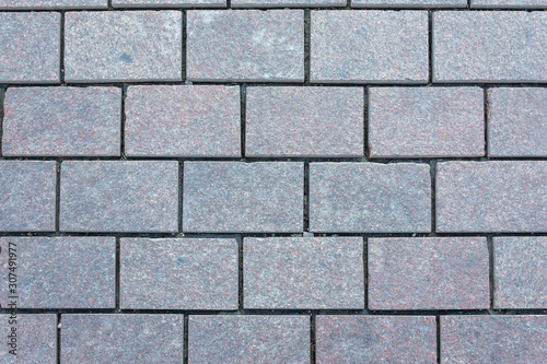 Naklejka premium Granite paving stones in the city top view. Stones paved road for horizontal...