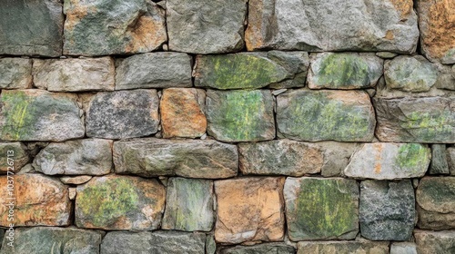 © VRVisionary, Obraz premium Granite stone wall featuring stains of green lemongrass