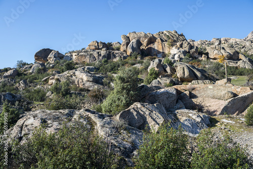 Naklejka premium Granitic rock formations in La Pedriza, Guadarrama Mountains National Park,...