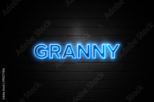 © Zobaair, Fototapeta premium Granny neon Sign on brickwall