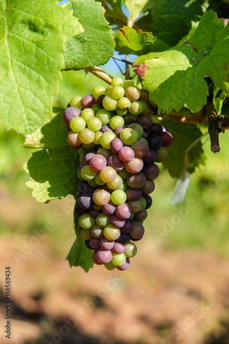 © Calin Stan, Obraz premium Grape bunch hanging from vine in winemaking region