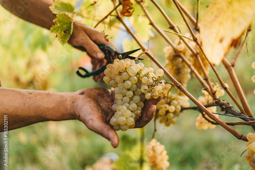 © isaac74, Obraz premium Grape harvest in the Tuscan hills.