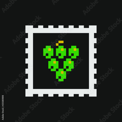© thepolovinkin, Fototapeta premium Grape pixel art icon. Design for logo, web, sticker and mobile app. Isolated vector illustration.