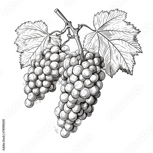 © artemstepanov, Fototapeta premium Grape Sketch, Hand Drawn Vine Grapes, Sketched Vineyard Design, Engraving Berries, Ink Fruits
