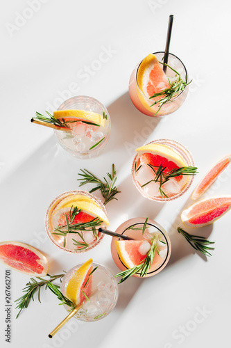 Naklejka premium Grapefruit and Rosemary cocktail. Refreshing and non-alcoholic drink perfect for spring or summer.