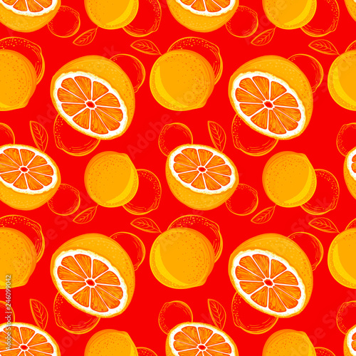Obraz premium Grapefruit seamless pattern. Sketch grapefruites. Citrus fruit background. Elements for menu, greeting cards, wrapping paper, cosmetics packaging, posters etc