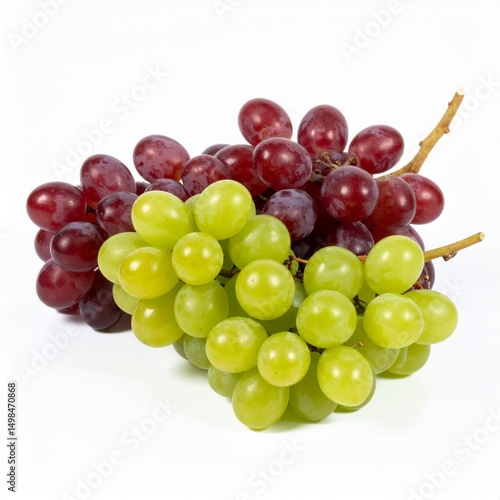 © arbi wiratama, Fototapeta premium Grapes on Isolated White Background – Fresh Bunch of Green and Red Varieties with Glossy Surface and Studio Lighting