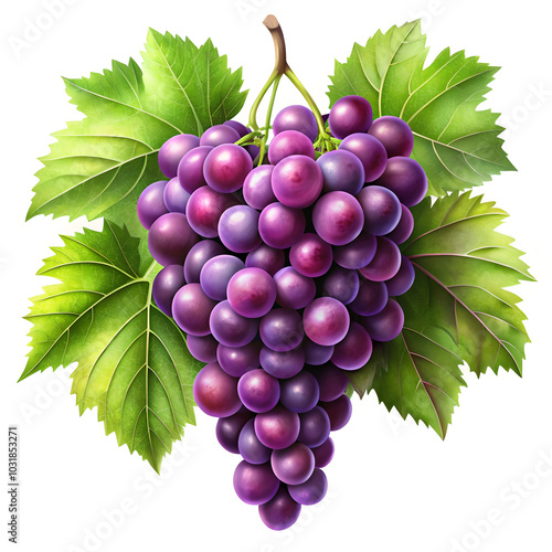 Fototapeta premium Grapes photos Bunch of grapes with leaf white background.