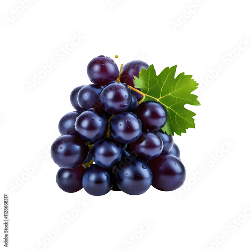 © Eugine, Fototapeta premium Grapes with green leaf on a transparent background
