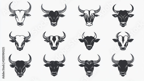 © Mufarokah, Naklejka premium Graphic bull heads collection, vector art, design elements