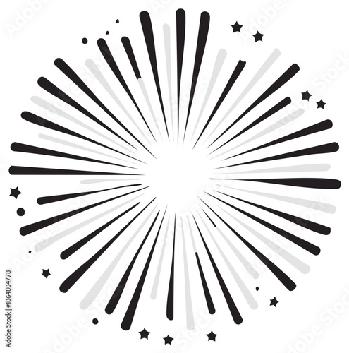 Obraz premium Graphic Burst Design of Black and White Rays with Stars and Dots