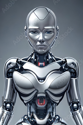 © Vieriu, Naklejka premium Graphic Concept of Cybernetics woman and Artificial Intelligence robotic Technology. Generative AI