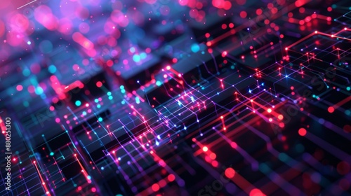© Palung, Fototapeta premium Graphic design background of tech scene or neon blue purple tone. Modern abstract background