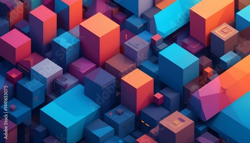 © Nadir, Obraz premium Graphic Design Element with Abstract Geometric Background and Isometric Vector Blocks