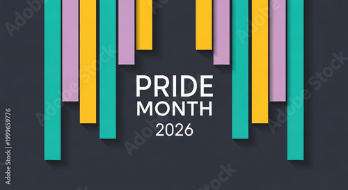 © PhotoArtHub, Fototapeta premium Graphic design featuring colorful vertical bars and the text "Pride Month 2026", symbolizing celebration and LGBTQ+ rights awareness