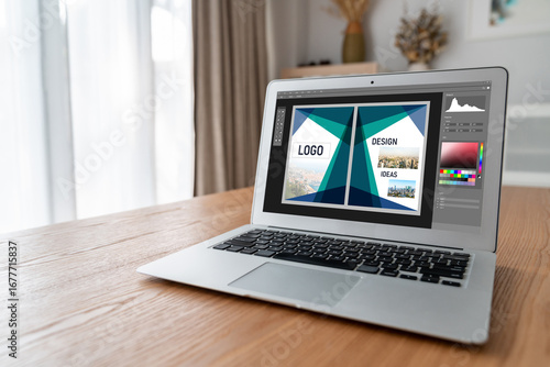 © InfiniteFlow, Fototapeta premium Graphic designer software for modern design of web page and commercial ads showing on the computer screen