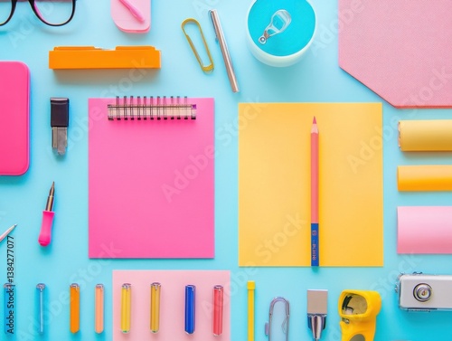 © Hafiz, Fototapeta premium Graphic designer tools flat lay with studio lighting and negative space