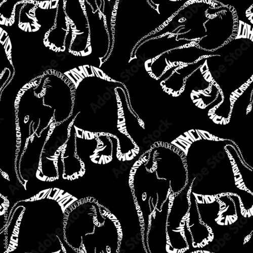 Fototapeta premium Graphic elephant on black background. Seamless pattern.