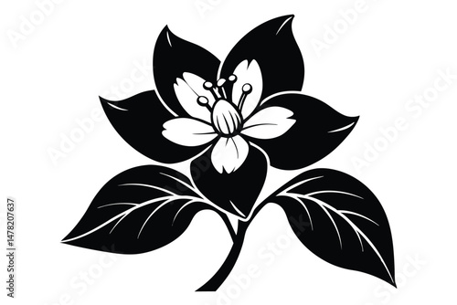 Fototapeta premium Graphic Illustration of a White and Black Flower with Stem and Leaves Design