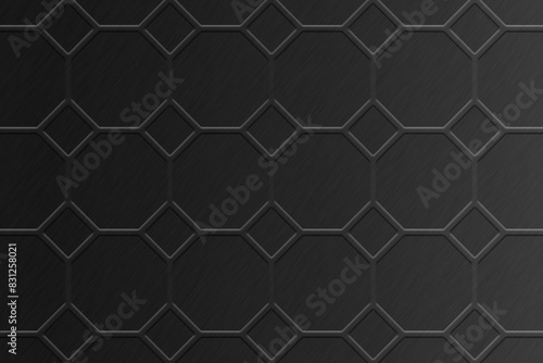 Fototapeta premium Graphic illustration of interlocking pattern on brushed black metal surface. Use as design element for websites, print and other graphics.