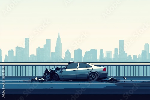 Naklejka premium Graphic representation of a car accident in a city setting with a skyline