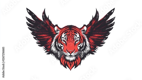 Obraz premium Graphic Tiger with wings on white backdrop, used for nature or sport symbol, animal designs