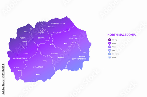 © Tuna salmon, Obraz premium graphic vector map of north macedonia. north macedonia map. eu country map.