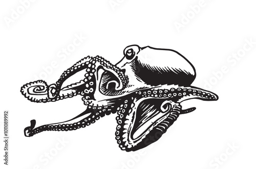 © Алексей Воробьёв, Obraz premium Graphical octopus isolated on white background,vector illustration. Sea-food