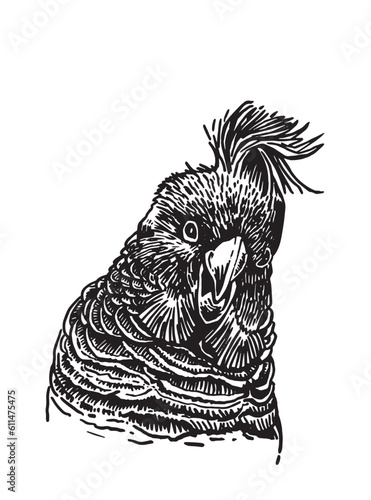 © Vita, Fototapeta premium Graphical parrot portrait isolated on white,vector element of bird.Ink pen parrot