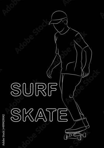© piyaphunjun, Fototapeta premium graphics image man cartoon character riding a skateboard or surf skate outline vector illustration