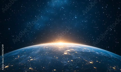 © Sunun, Obraz premium graphics of space, planets, and astronauts on a white background.