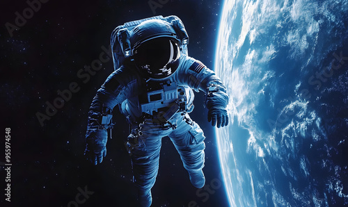 © sathian, Fototapeta premium graphics of space, planets, and astronauts on a white background.