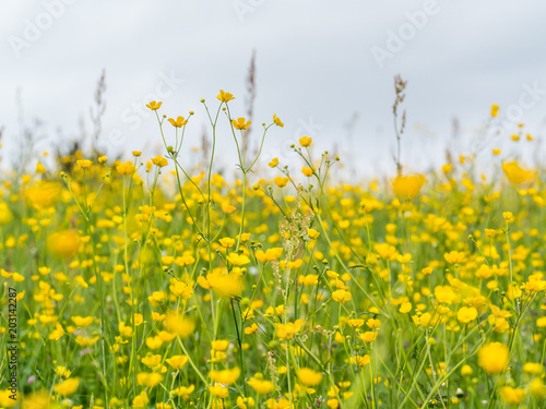 © Herr Loeffler, Fototapeta premium Gras im Wind gelbe Butterblume