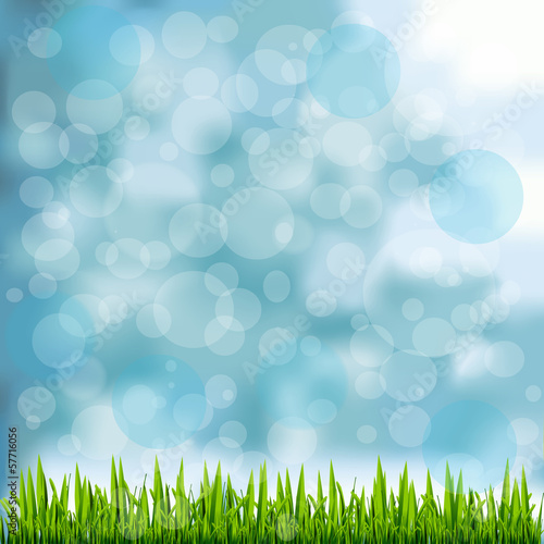 © Aurielaki, Obraz premium Grass Border On Natural Blue Background