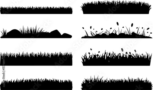 © Grafica, Obraz premium "Grass Border Silhouette – Black Vector Design on White Background"