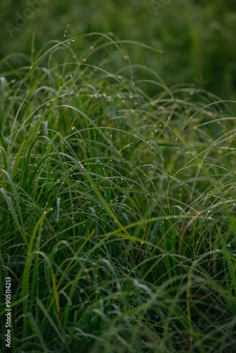 © Grigoriy, Obraz premium Grass covered with dew drops
