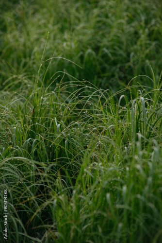 Obraz premium Grass covered with dew drops
