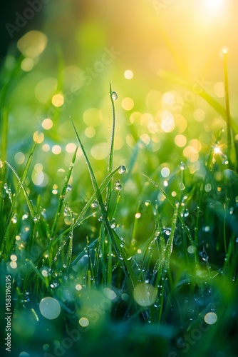 © Soft Light, Fototapeta premium Grass dew reflects colorful sunlight