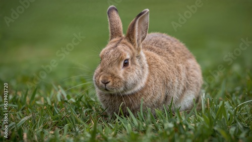Fototapeta premium Grass-eating rabbit (Oryctolagus cuniculus) in natural habitat