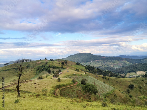 © Salaithip, Fototapeta premium Grass field on the mountain.