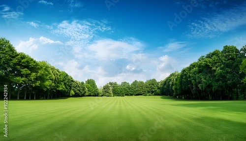 © Thapanon Phoonchai, Obraz premium grass filled and tree with blue sky,