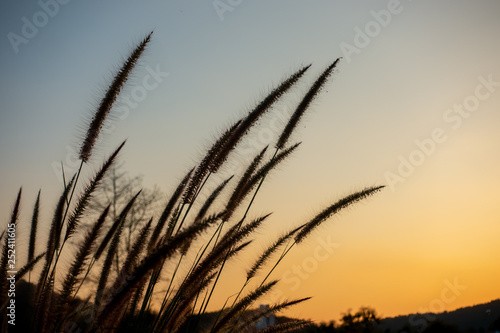 © Sawai Thong, Fototapeta premium Grass flower before sunset background